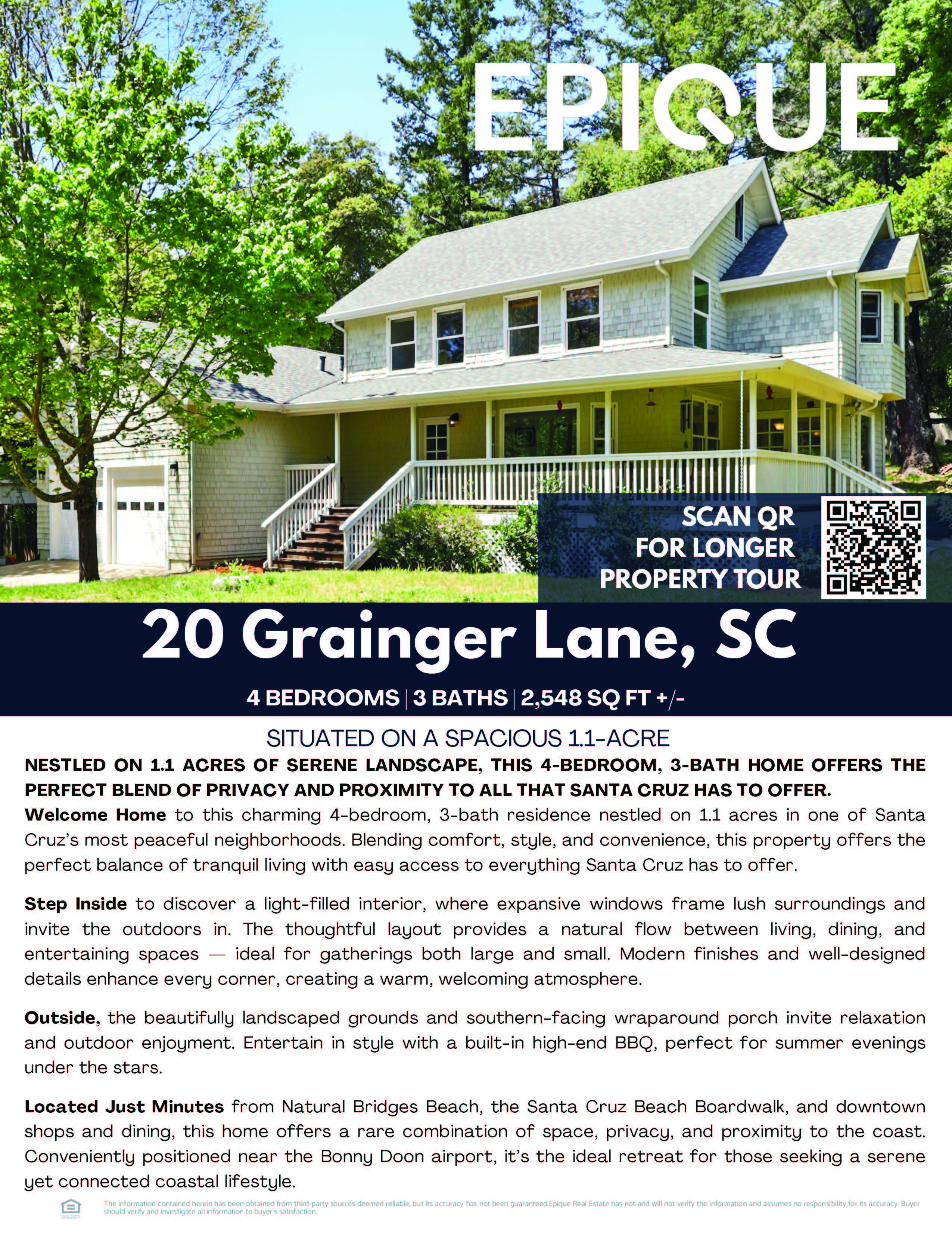 Check out the listing below and click on the QR code for a property tour. Below market financing offered! Call Paul Locatelli 831-750-9795 with any questions.