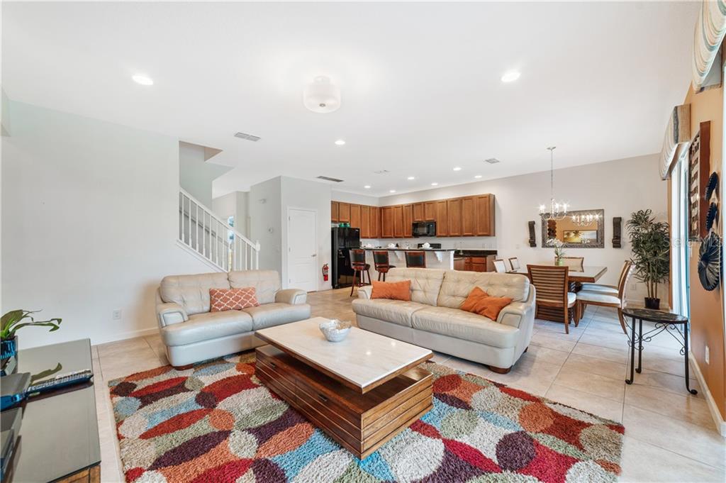 Beautiful fully furnished resort vacation pool home for immediate purchase. 6 large bedrooms and 5 baths. Turnkey ready with the great floor plan Coconut Palm by Park Square Homes. Great loft upstairs with game/media room & theme rooms. Granite kitchen/bathroom countertops, all kitchen appliances, laundry room, screened covered heated pool, covered lanai, and southwest facing pool. Professionally decorated furniture package including leather furniture. Gated entrances. The HOA fully maintains the lawns, common areas and kid-friendly areas. The clubhouse features a resort-style pool & lounge complex and a full exercise room/gym. Large pool with slides, tennis courts and pool cabanas. 15 minutes from Disney. Perfect for income generating short-term rental vacationers seeking what you will have – a secure, family-friendly resort experience. It can be your primary residence or your indulgent vacation home.